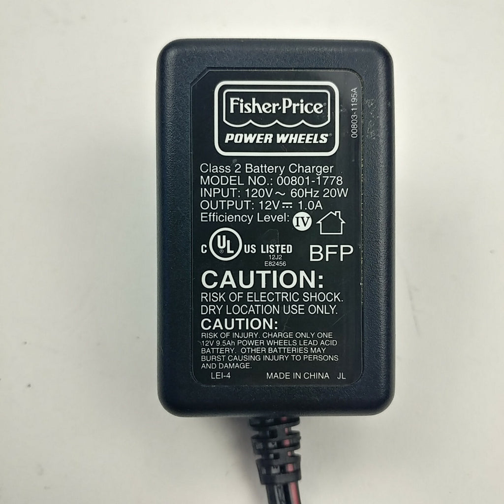 Note: This product is a preowned OEM charger cord in excellent working condition. Model 00801-1778 fits all standard Fisher-Price 12-volt Power Wheels vehicles.
