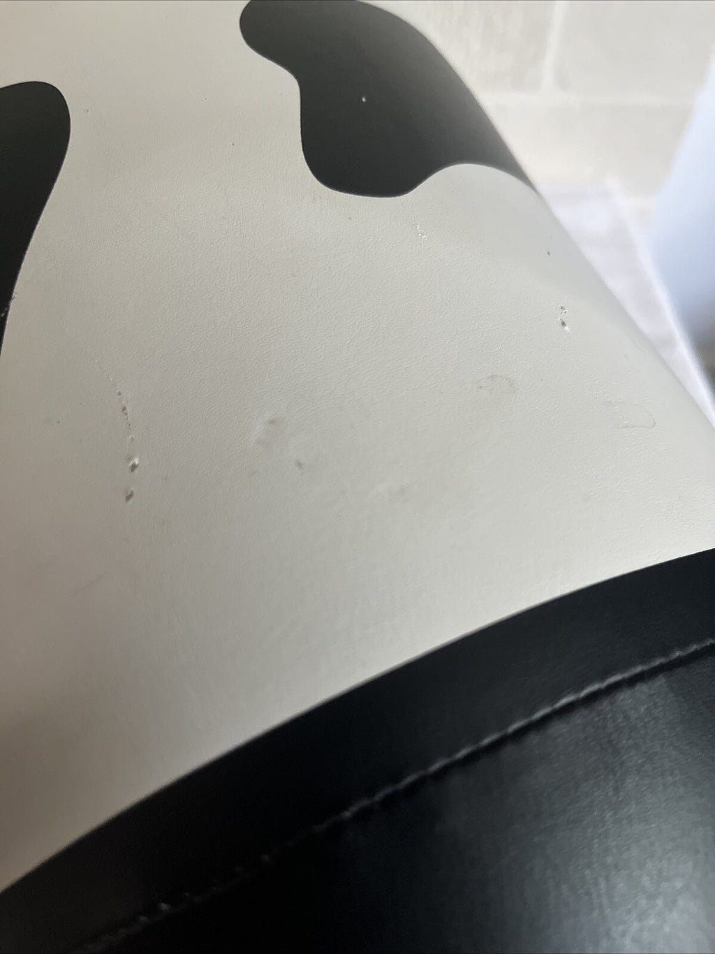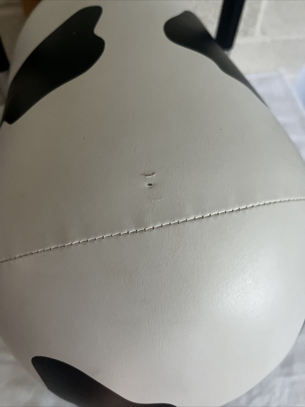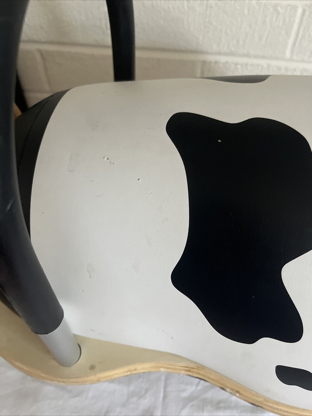 - Material: Durable wood construction with a soft cow-themed seat covering