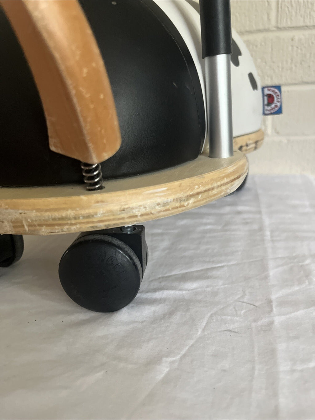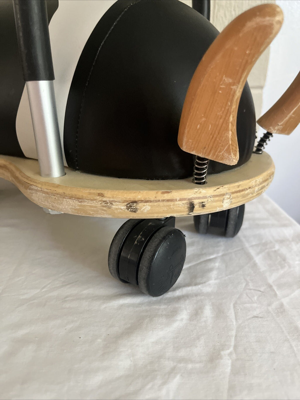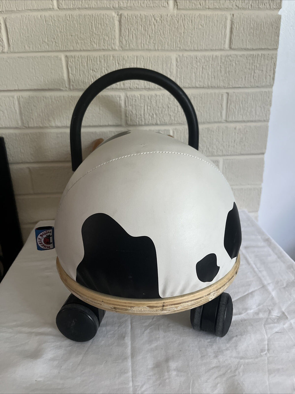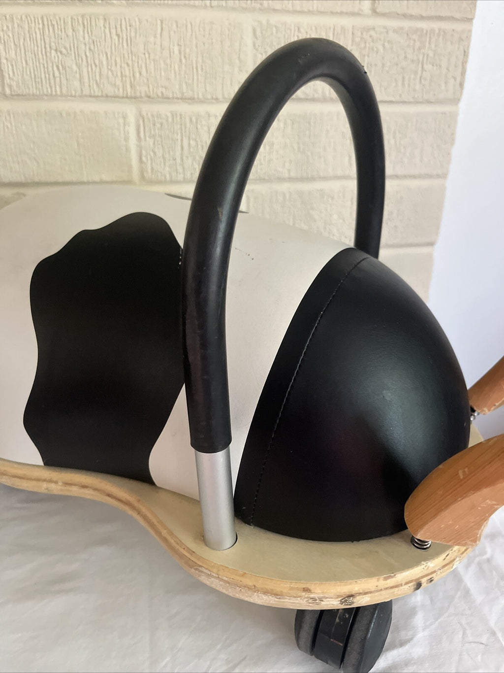Every journey is more enjoyable with a comfortable seat! The cow-themed seat offers a soft and inviting place for your child to sit as they scoot and glide. While it shows a few snags and tiny holes—a testament to real play—these do not detract from the overall comfort. Instead, they add to the ride-on’s friendly, well-loved personality, promising your child that this trusty cow is always ready for the next adventure.