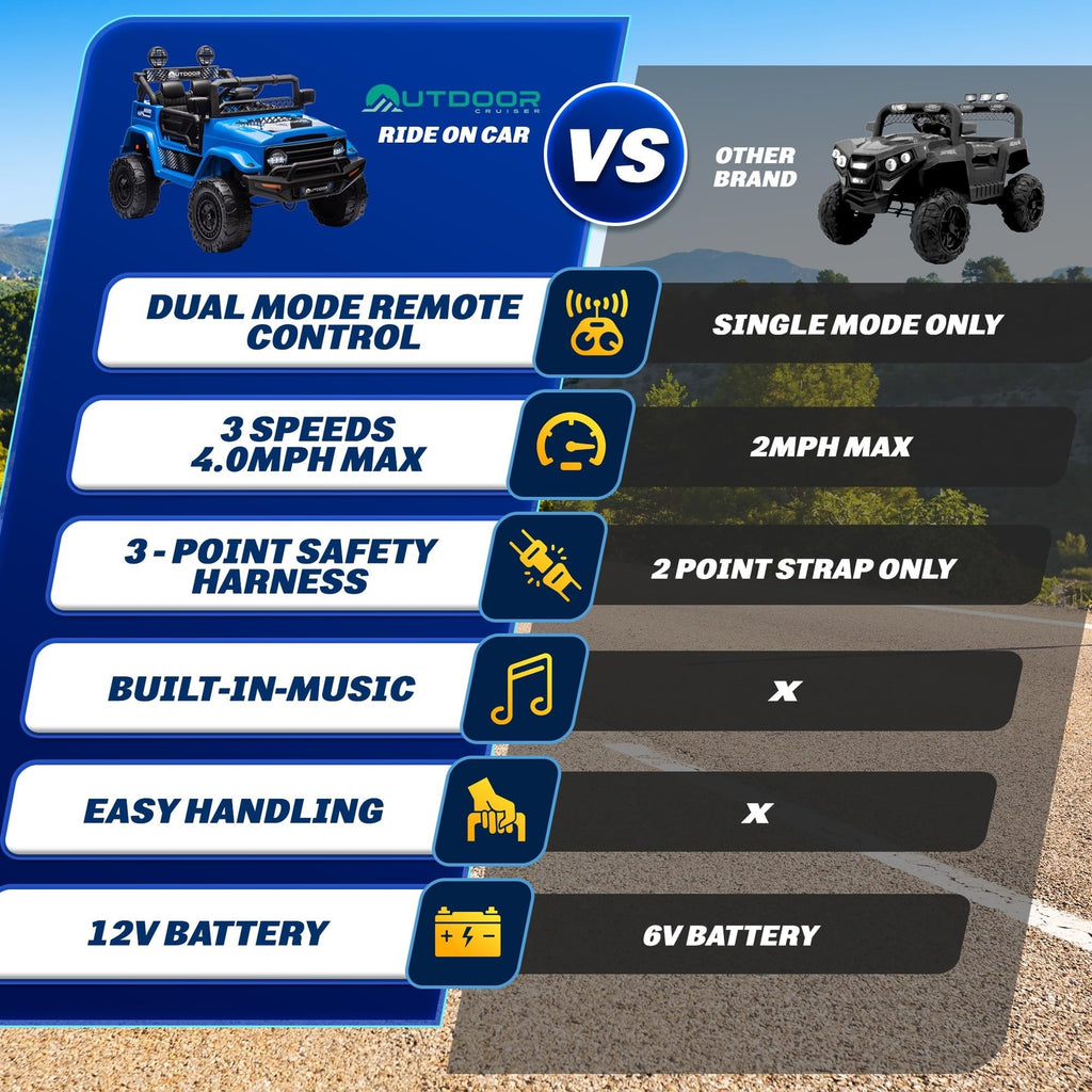 Embark on Unforgettable Adventures with the Outdoor Cruiser 12V Ride-On Car – Blue Edition