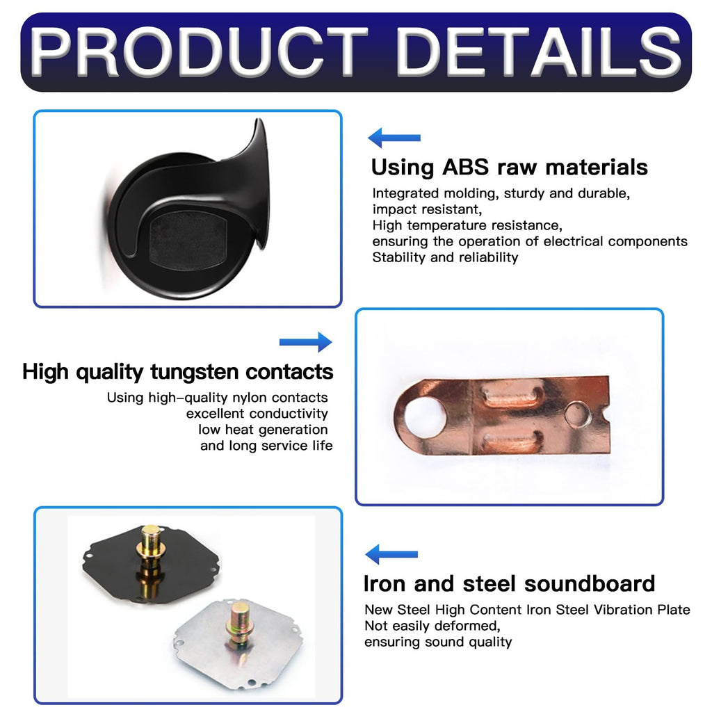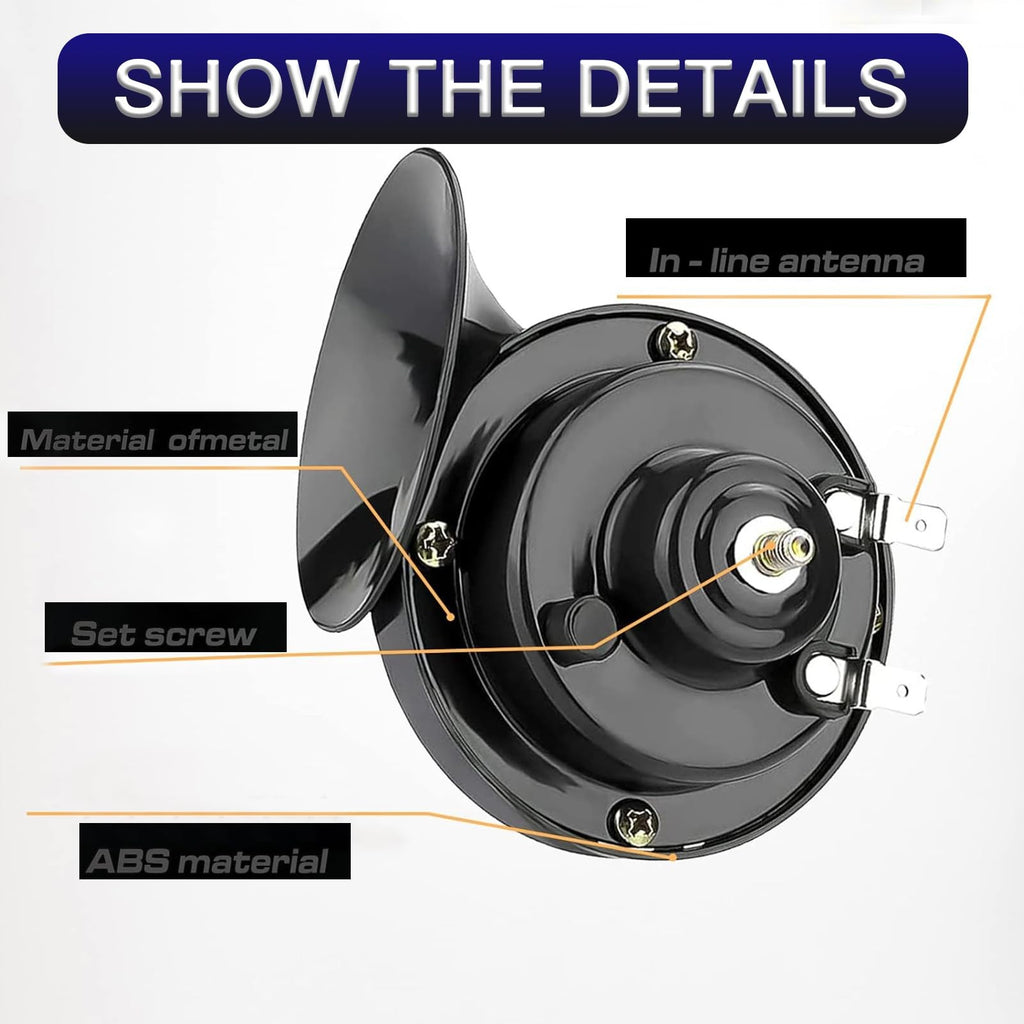 - 2 x High-Decibel Snail Horns (3.5-inch diameter each)