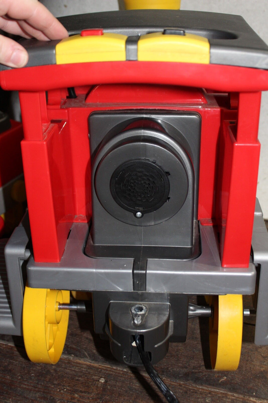 This train set shows some charming signs of previous adventures, with moderate wear and tear, including a few scratches and scuffs. Some stickers are missing here and there, adding character and the perfect hint of a well-loved toy ready for new journeys. Inside the train, a slight rattle hints at a hidden toy companion, sparking curiosity and adding a unique element to the play experience.
