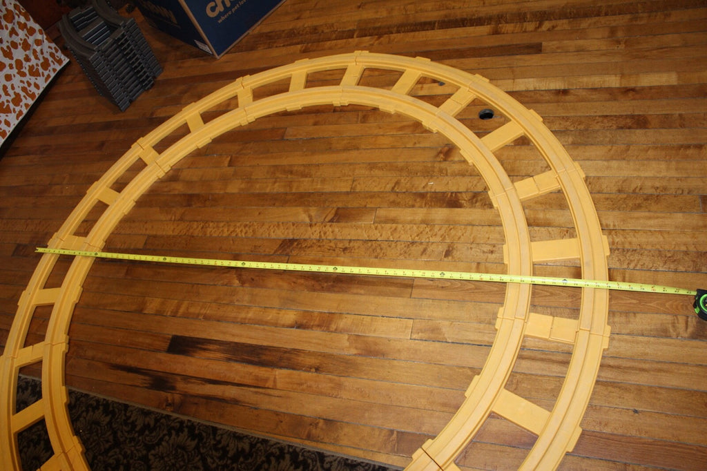 The expansive track layout stretches a generous 14.5 feet from end to end, offering plenty of space for the train to chug along and explore. At its widest points, the track measures 6.5 feet across, creating a sprawling playground that sparks curiosity and active play. This layout includes a clever mix of track pieces that allow for flexible configurations, letting you tailor the railway to fit your space or mix things up for fresh adventures.