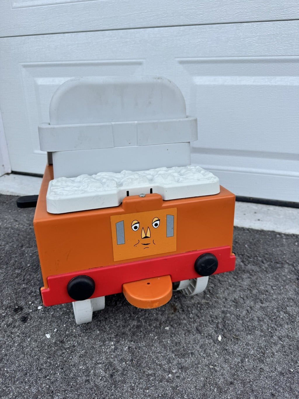 - Durable Shell: Crafted from molded, high-density plastic, Annie withstands enthusiastic play. Minor scuffs and scratches speak to past adventures but don’t affect the caboose’s robust performance, ensuring it remains a reliable ride-on companion.