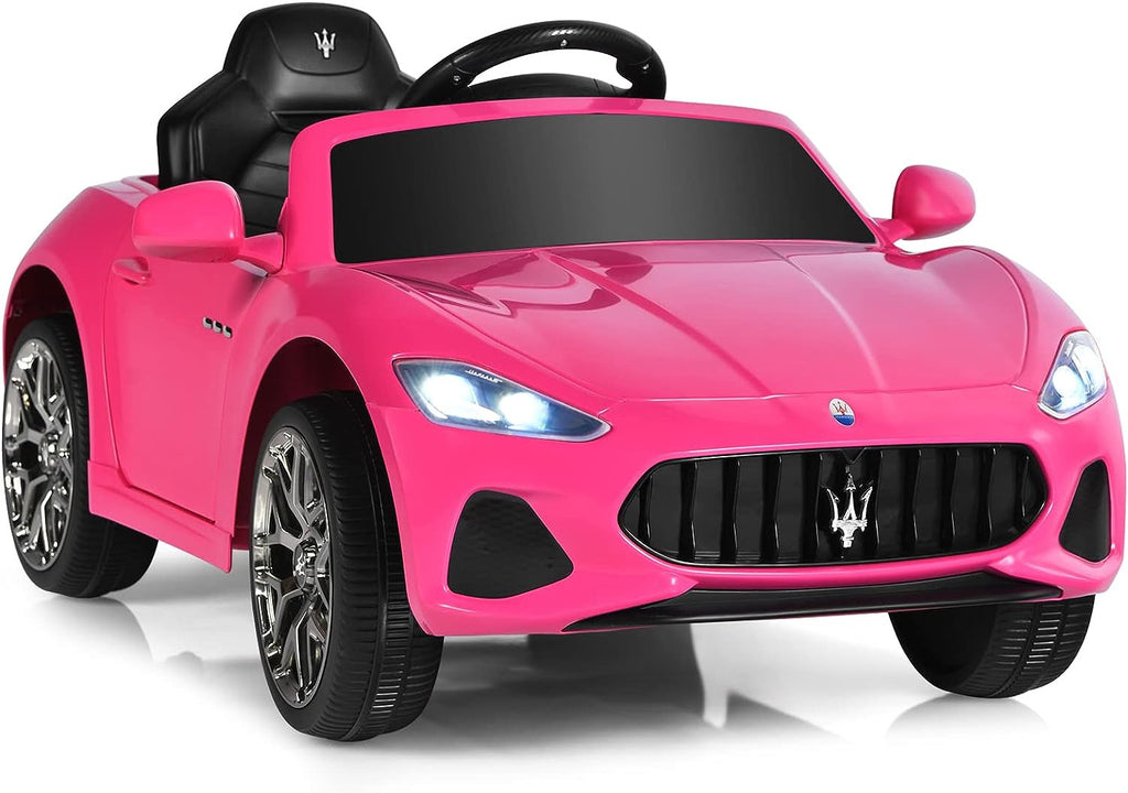Every inch of this pink ride-on car reflects the sleek, head-turning style of the Maserati GranCabrio. From its contoured grille to the curving fender lines, your child will feel like a VIP passenger in their own security-conscious sports car. The vibrant pink finish is eye-catching and playful, perfect for girls and boys who love a pop of color. Shiny chrome accents, realistic molded wheels, and Maserati badges complete the look—so your driver can ride in style.