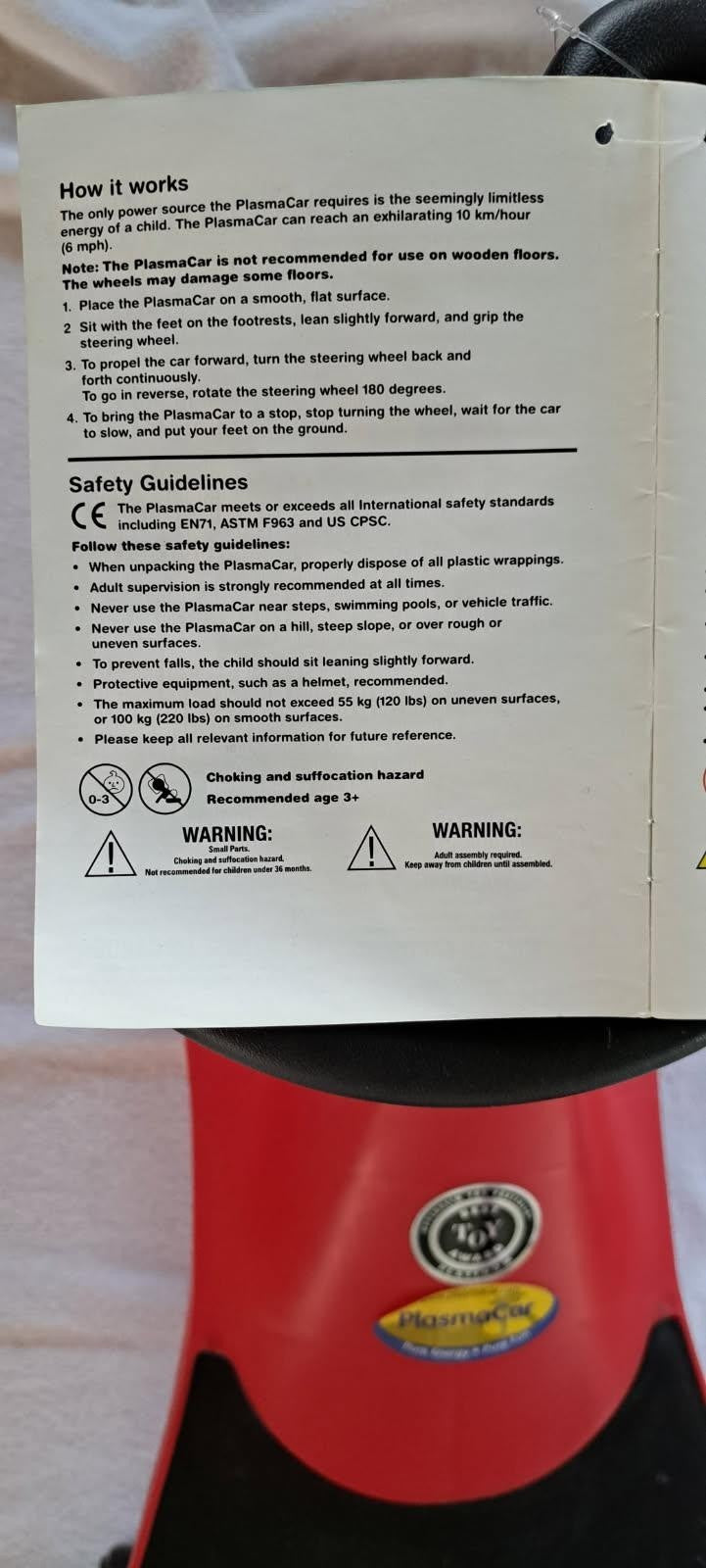 - One Original PlasmaCar ride-on vehicle (no batteries required)