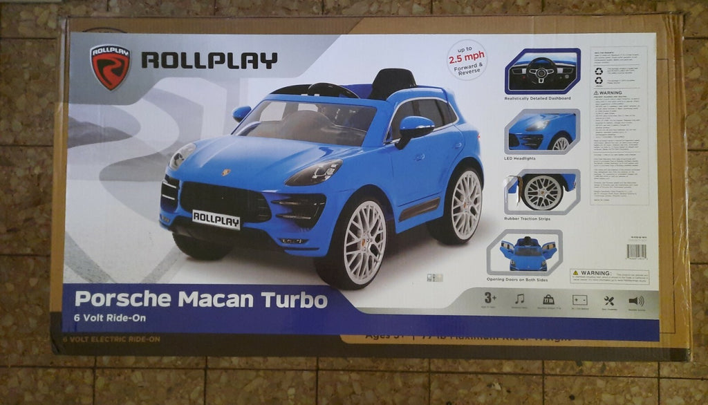 Experience the Thrill of the Porsche 6V Macan Turbo Powered Ride-On in Bold Blue