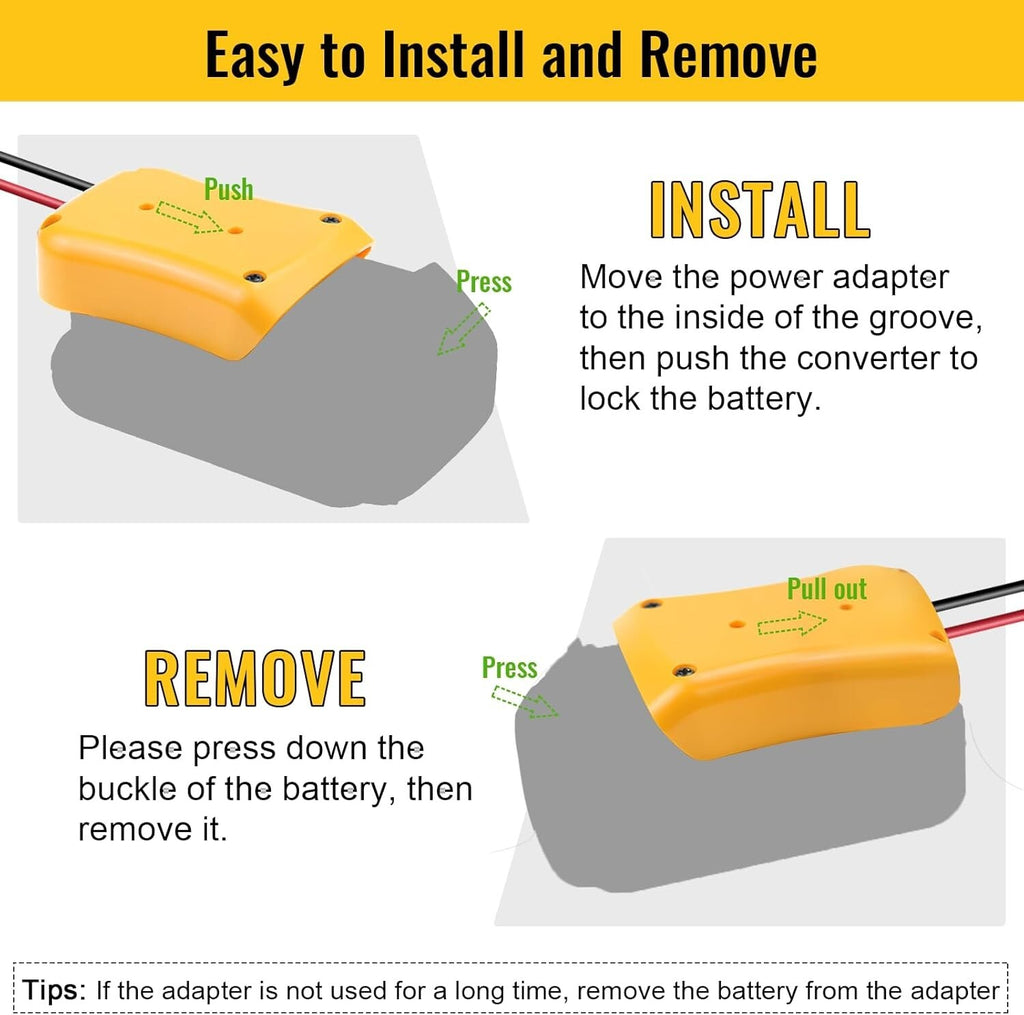 - This adapter is not a charger—it draws power directly from your Dewalt battery to run your ride-on car, RC truck, or other devices.