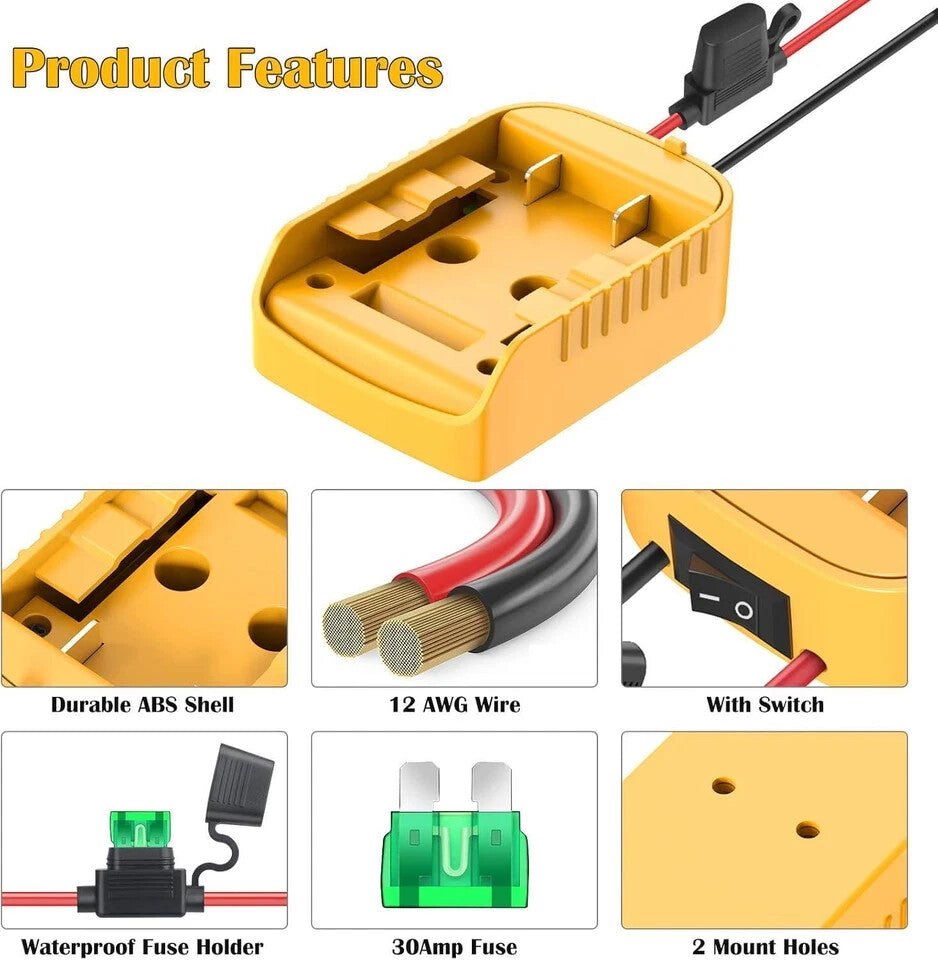This adapter is the bridge that connects your Dewalt power tools’ batteries to your favorite ride-on toys, DIY trucks, or remote-control cars, empowering you to convert and upgrade with ease. No more settling for weak batteries or complex wiring – this kit is designed for simplicity, durability, and safety, ensuring both kids and parents can enjoy worry-free play sessions.