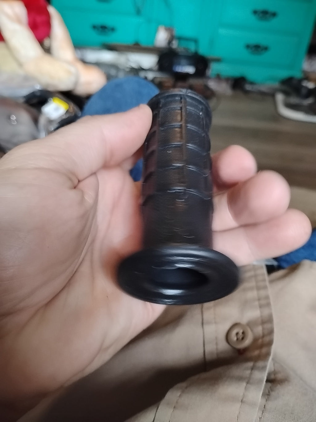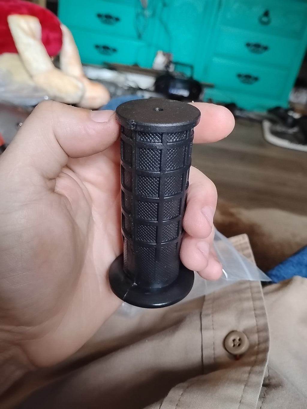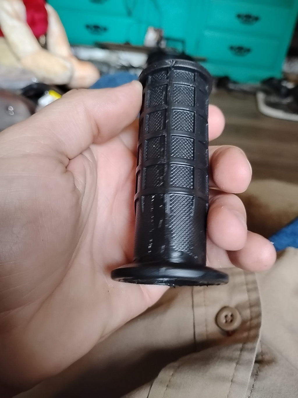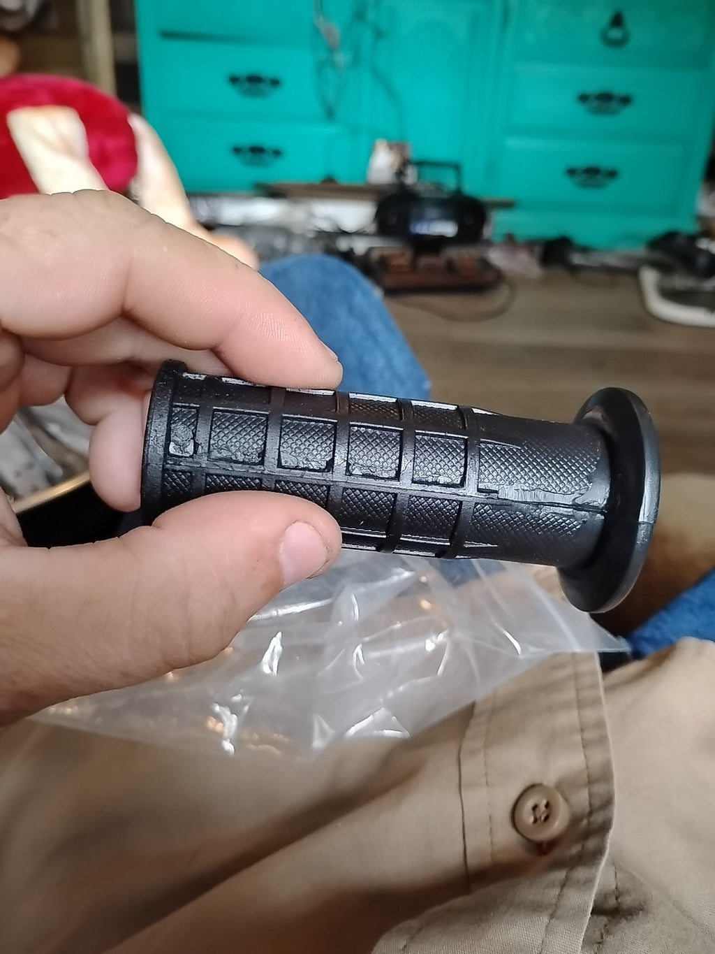 - Slide the grip over the existing handlebar until it rests snugly in place.