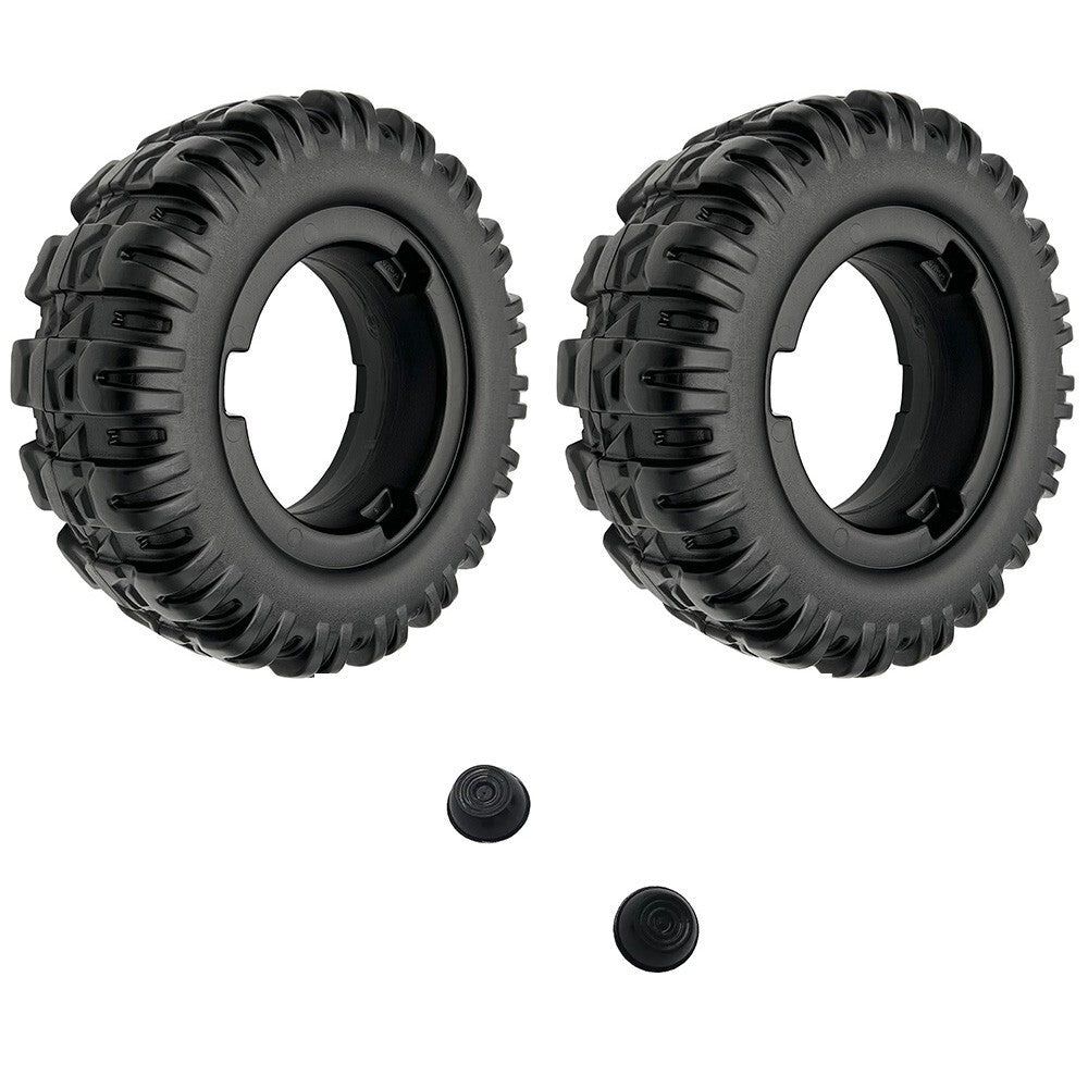 - Two matching retainer caps to secure each wheel in place
