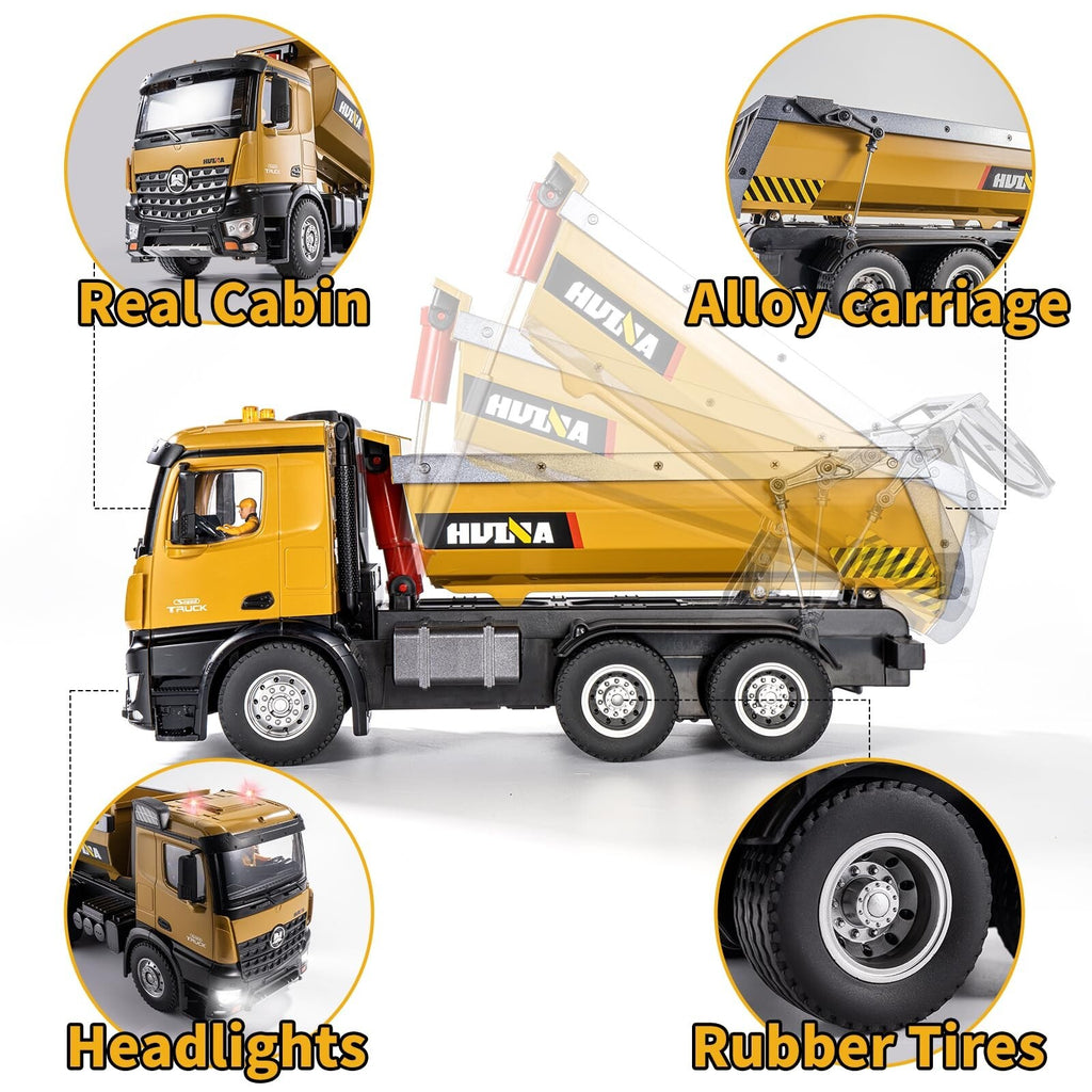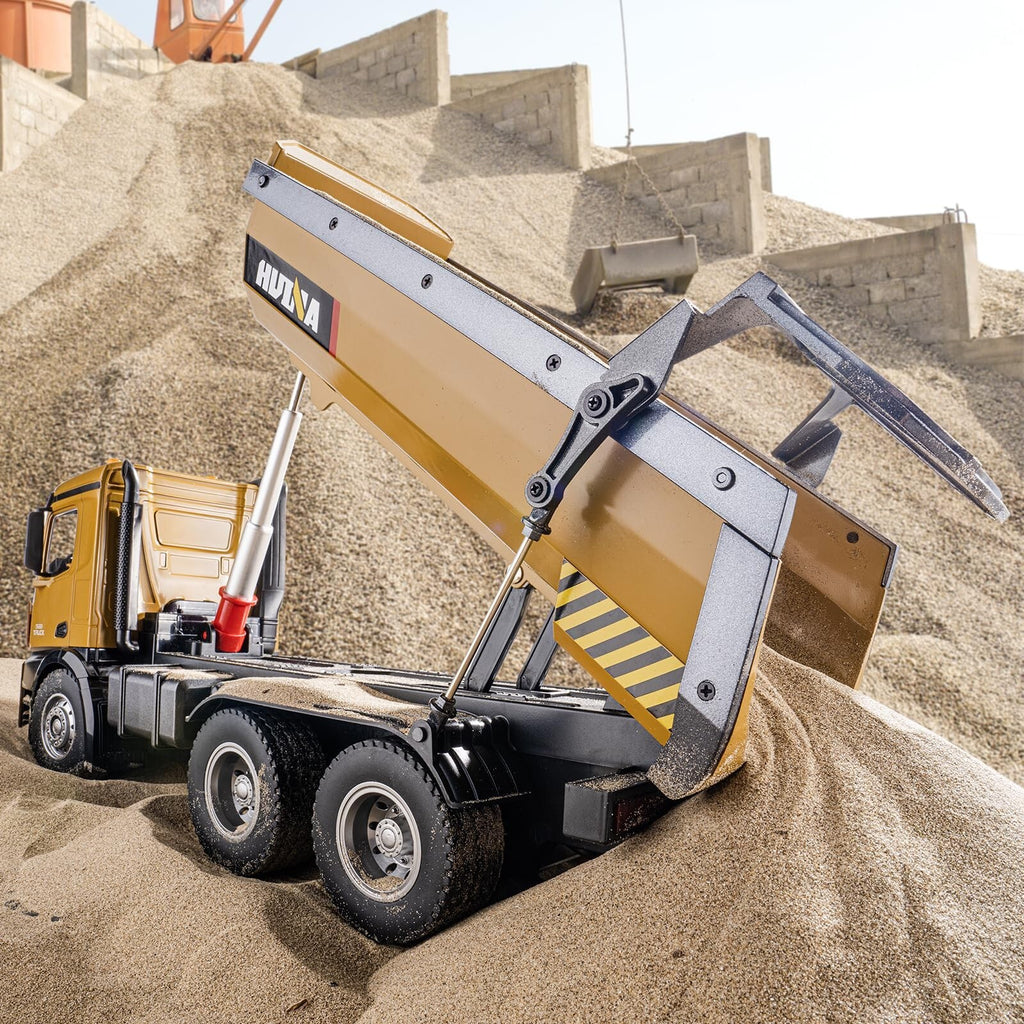 - Control: 2.4 GHz 10-channel remote (steer, throttle, dump control, lights, sound)