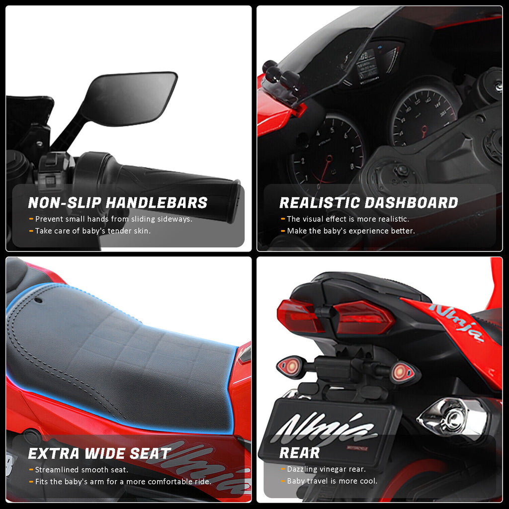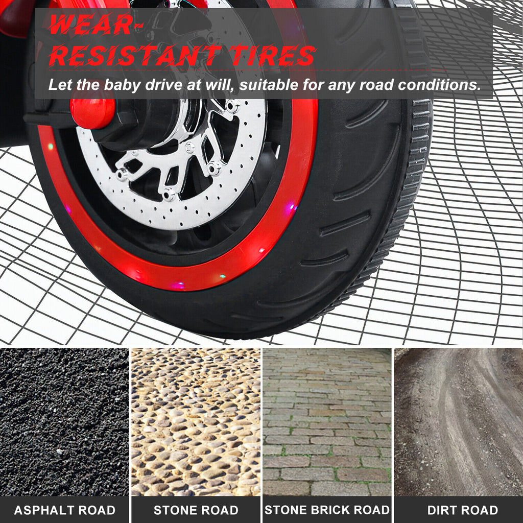 - Equipped with panel lights and bright LED lights, this motorcycle will make your child feel like a real rider. The ultra-realistic design adds to the excitement and adventure.