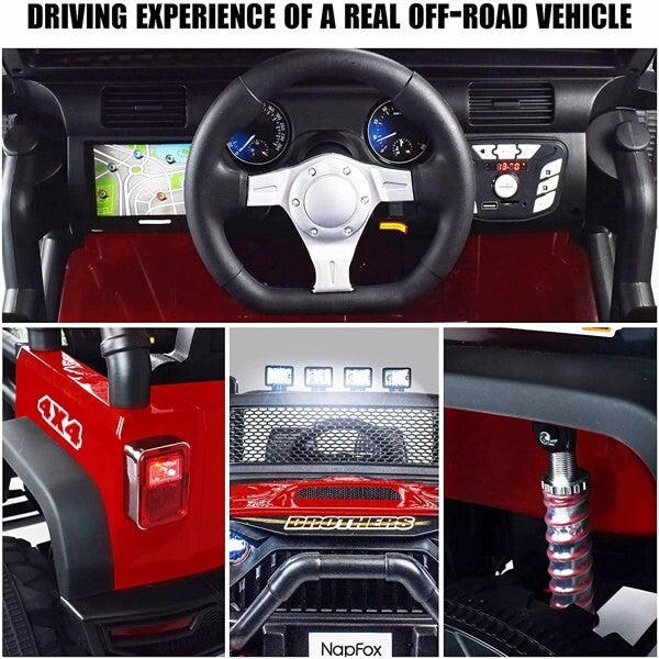 - Realistic Design & Superior Comfort: Measuring 48.4 inches long, 34.6 inches wide, and 31.5 inches high, this ride-on car boasts a roomy interior of 17.7 by 17.7 inches—plenty of space for two youngsters to ride side by side. Two adjustable seats with secure seat belts ensure your children feel snug and safe as they cruise around, stimulating imaginative play in ultimate comfort.