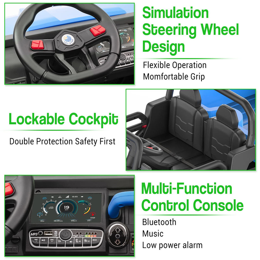 Every parent wants their child to play safely, and this electric ride-on truck is built with that principle at its core. It features a smooth soft start mechanism that gently accelerates to avoid sudden jolts. The one-key start-up makes it easy for your little driver to get going while the secure seatbelt keeps them safely strapped in. Lockable doors provide an extra layer of protection, and spring suspensions ensure a comfortable ride over various surfaces. These safety measures give you confidence while your child enjoys hours of spirited driving.