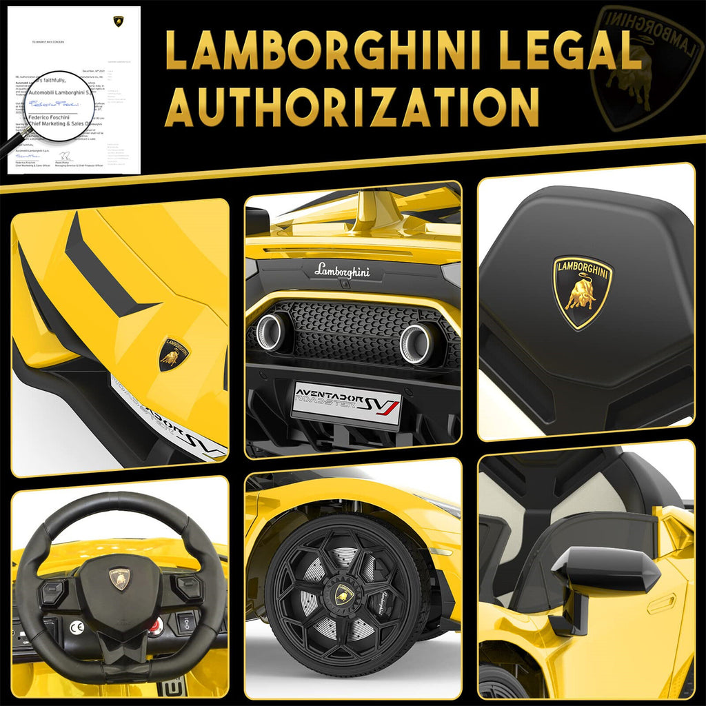 - Licensed Lamborghini ride-on car body with realistic detailing
