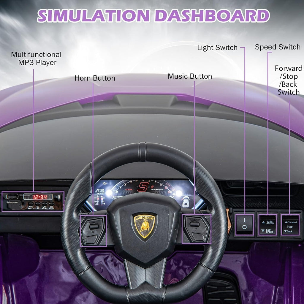 Stylish Purple Lamborghini Ride-On Car for Kids