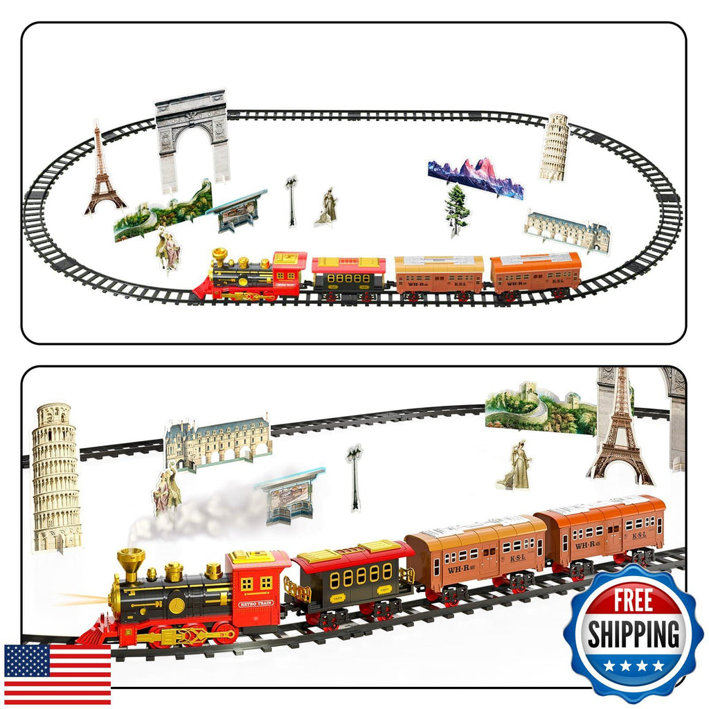 - Complete Motorized Train Set: 1 classic steam engine, 2 passenger coaches, 1 VIP passenger car for special guests