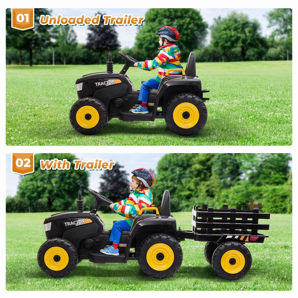 The TOBBI 12V Electric Kids Ride On Tractor with Trailer and Lights is the perfect ride-on toy for your adventurous little ones. With its vibrant yellow and black color scheme, this tractor is sure to catch their attention and spark their imagination.