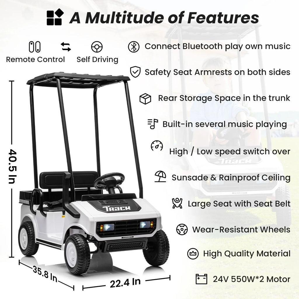 - All-Weather Roof: An overhead canopy shields riders from sun and light rain, extending playtime no matter the weather.