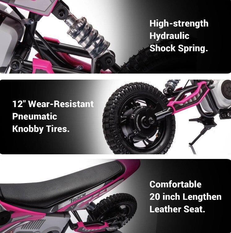 - Powerful 350-Watt Electric Motor: Delivers the muscle your child needs for smooth acceleration and thrilling rides. The high-torque motor ensures climbs up gentle slopes are effortless, so every outing feels like a real motocross race.