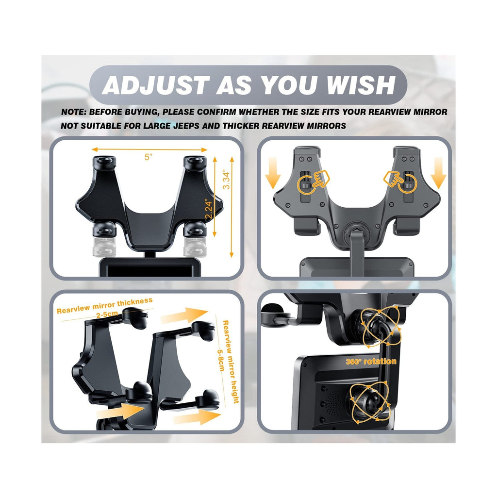 - Mounting Type: Sturdy headrest mount and under-mirror bracket