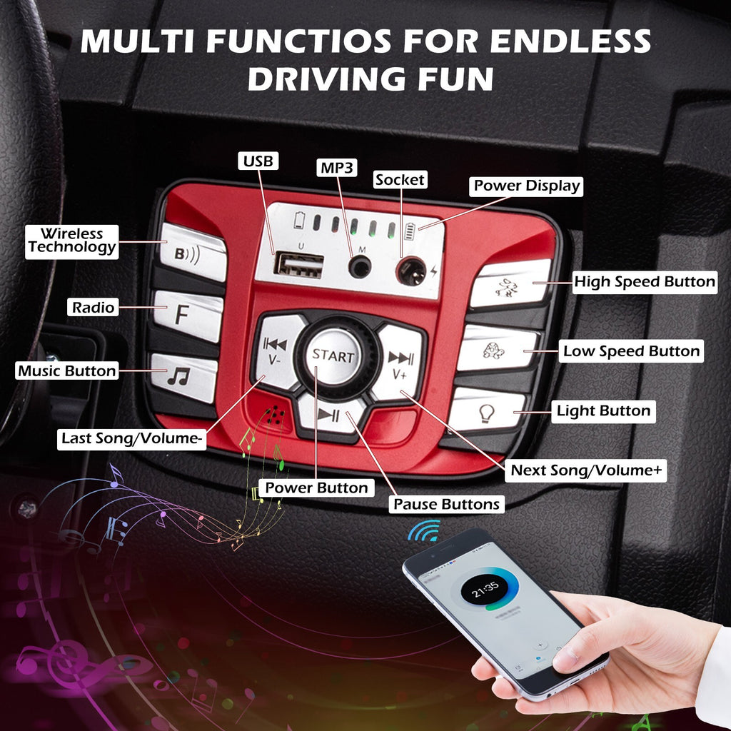 Transform every outing into a magical adventure with dazzling LED lights and a built-in music system. This ride-on truck includes a music player with volume control, a USB port, and Bluetooth connectivity so your child can enjoy favorite tunes on the go. The flashing lights synchronized to the melodies captivate little imaginations and draw smiles from passersby, turning your child’s drive into an enchanting spectacle that keeps them happily engaged.