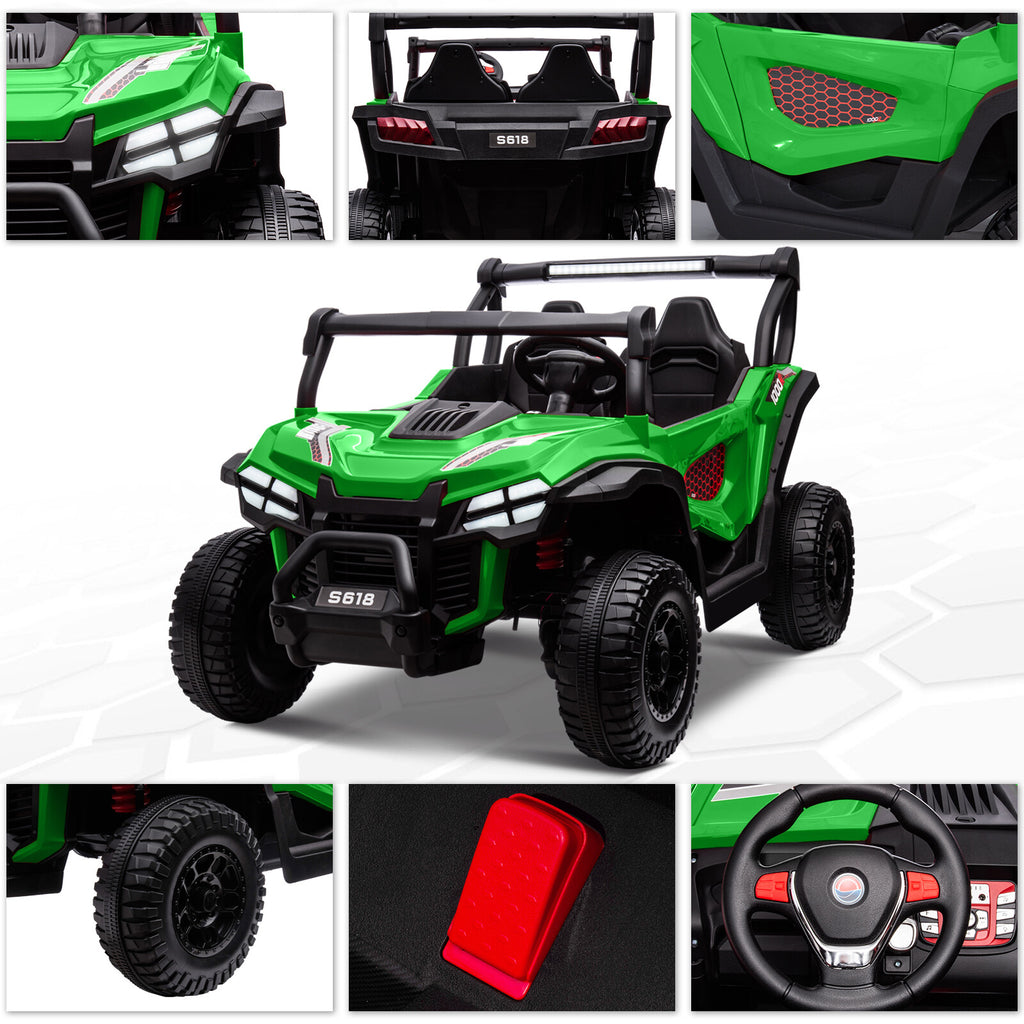 Ignite your child's imagination and fuel their love for adventure with this dynamic 4WD Kids Ride-On Car UTV. Measuring an impressive 55.5 inches in length, this rugged and realistic off-road truck is designed to thrill toddlers and young explorers aged 3 and up. Crafted with vibrant colors and loaded with exciting features, this ride-on toy transforms playtime into an exhilarating journey filled with fun, learning, and endless smiles.
