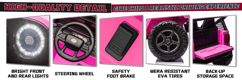 This is no toy push–it’s a fully electric 24V ride-on truck engineered for performance and reliability. Powerful motor assemblies deliver smooth acceleration up to 5 miles per hour, while sturdy EVA wheels grip on grass, gravel, asphalt, and dirt paths. Your child can tackle gentle slopes and navigate backyard terrain with ease.
