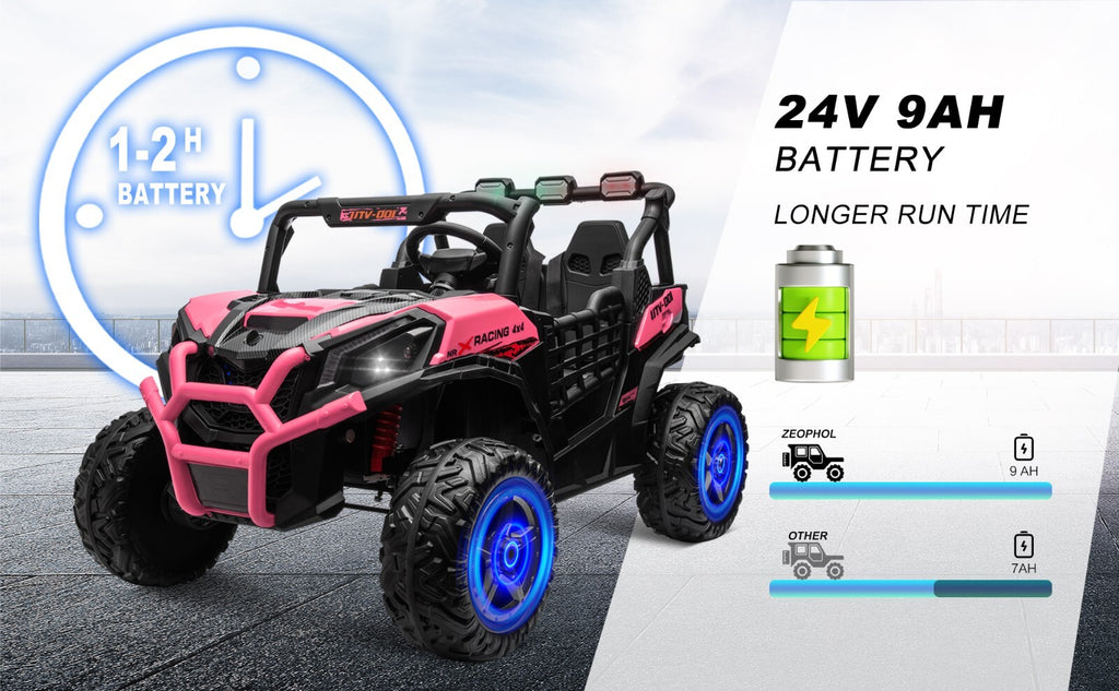 Gift-giving becomes a breeze with this eye-catching ride-on UTV, available in a charming pink color that captivates toddlers and young kids alike. With realistic vehicle styling and vibrant dynamic LED lights, this truck commands attention and sparks endless hours of imaginative play. It’s not just a toy—it’s a mini vehicle that encourages hand-eye coordination, logical thinking, and social interaction when friends or siblings hop in together!